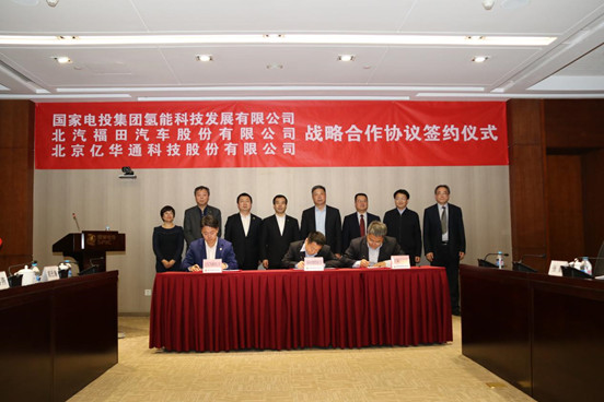 2019年1月23日,國家電投集團氫能科技發(fā)展有限公司與北汽集團及北京億華通科技股份有限公司三方戰(zhàn)略合作簽約儀式在國家電投集團中央研究院舉行。